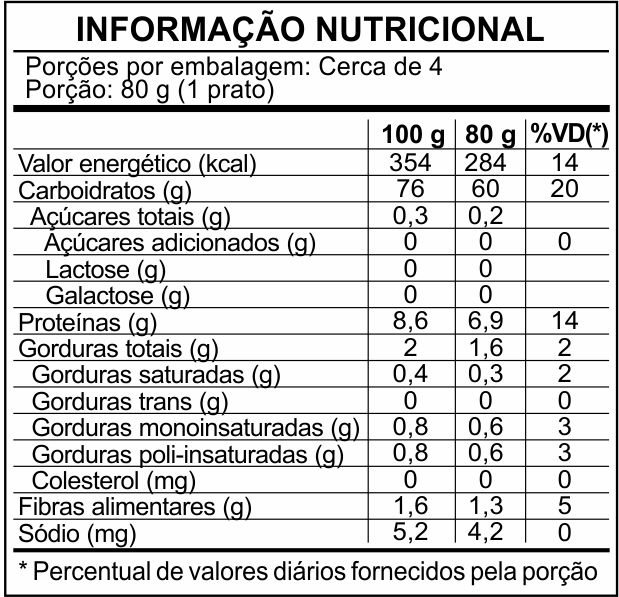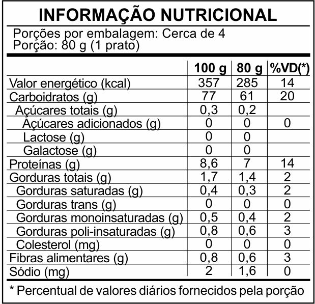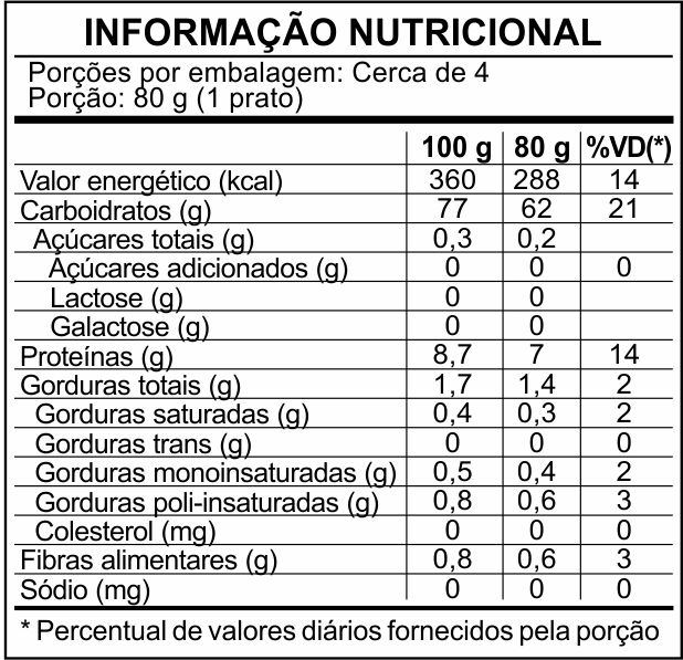 farinha de arroz, farinha de amaranto e farinha de quinoa.