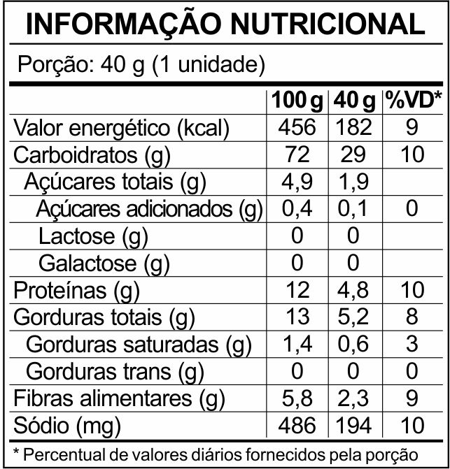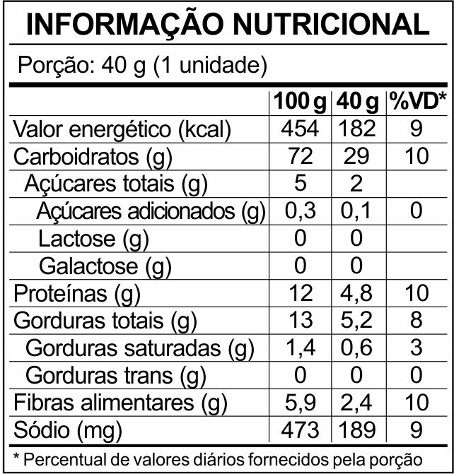 - Gordura trans: 0g (0%)